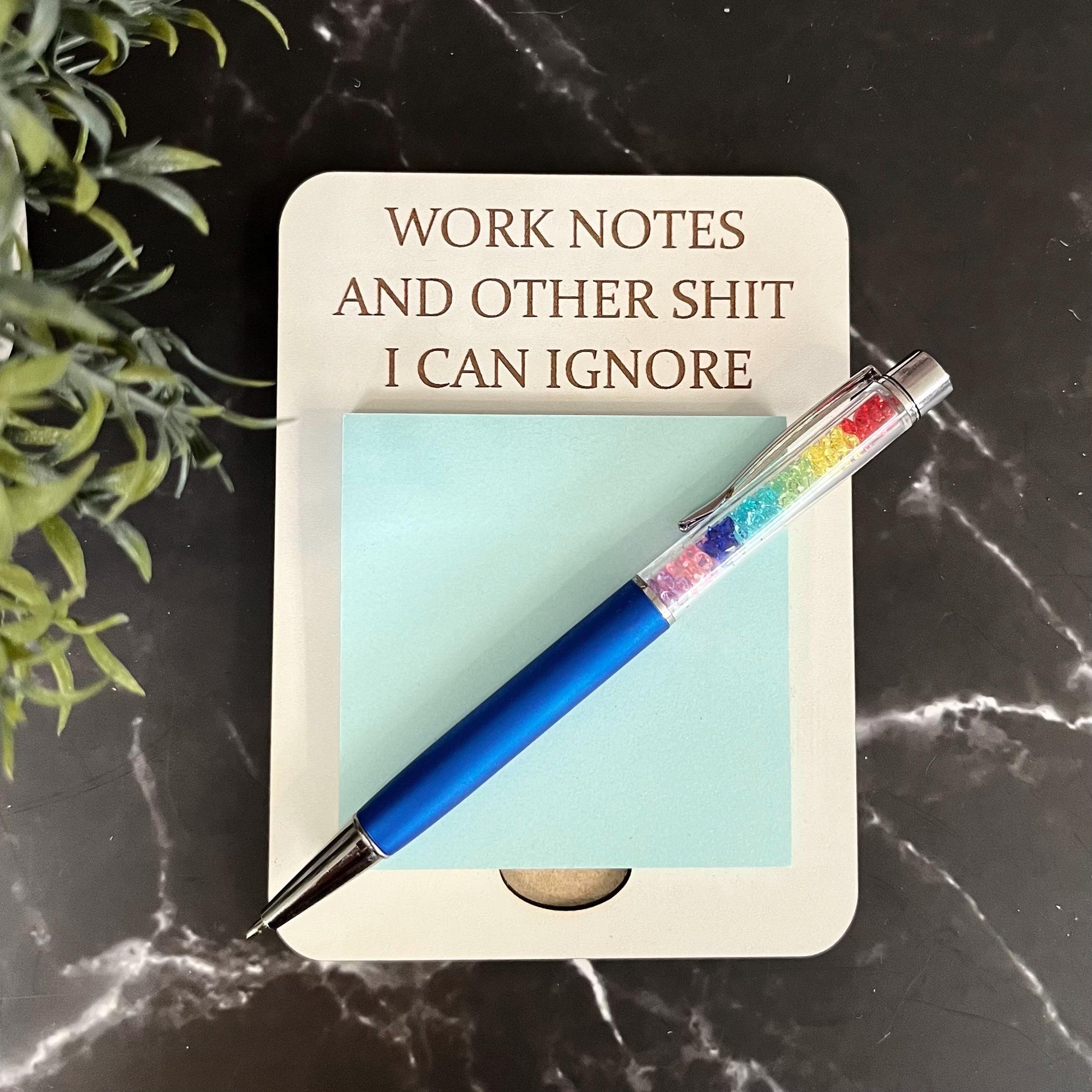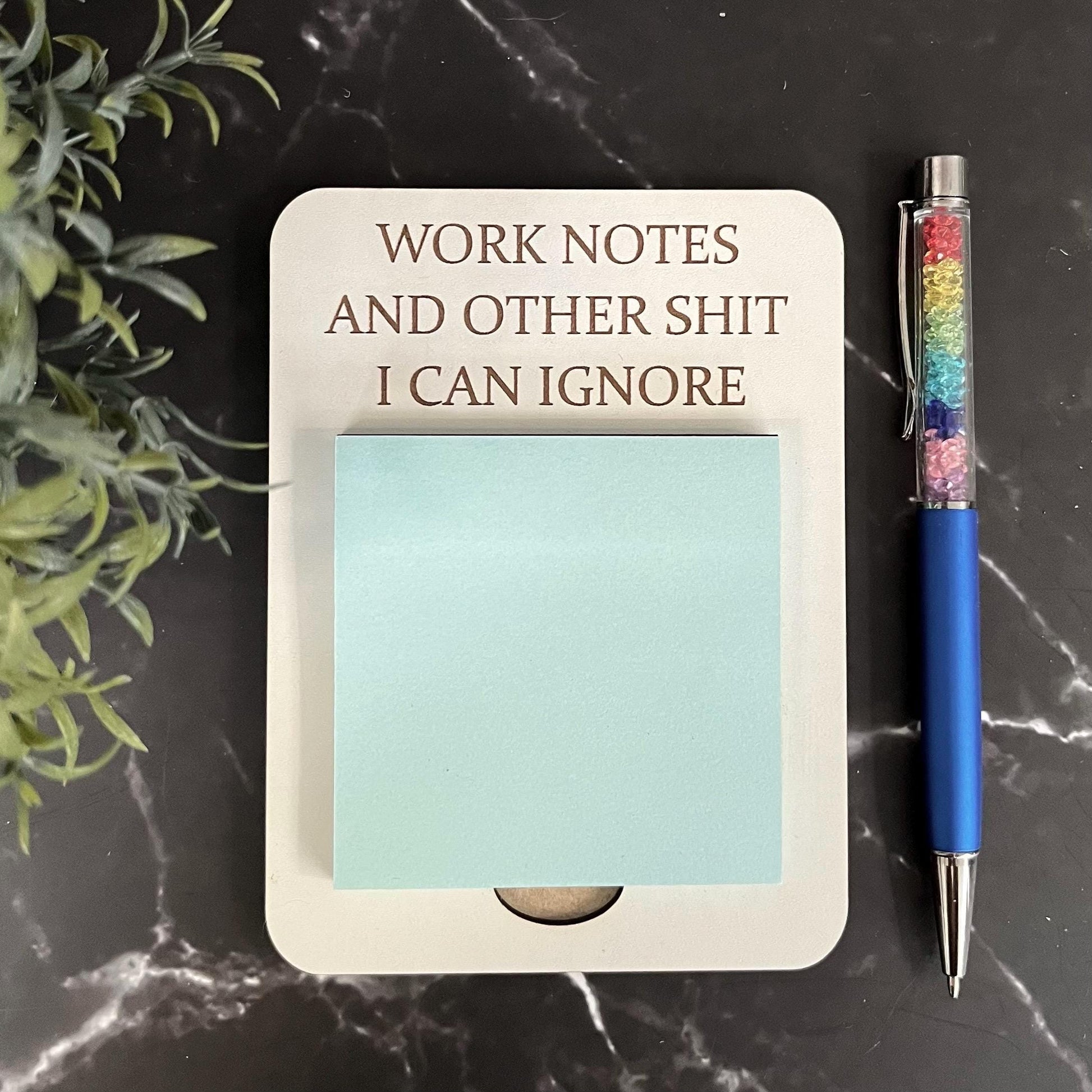 Funny Sarcastic Post-It Note Holder: Engraved Wooden Desk Organizer, Work Notes And Other Shit. Note Pad