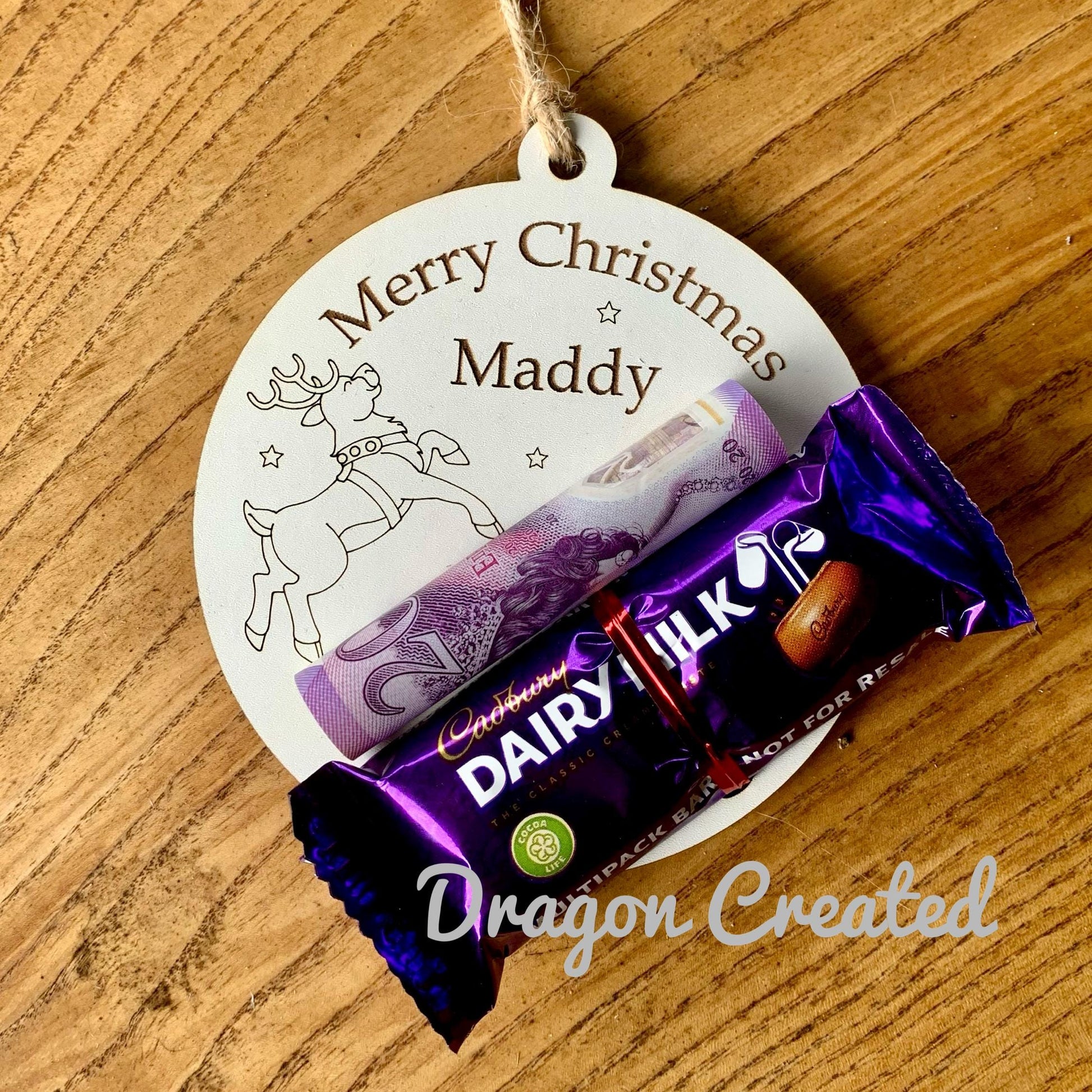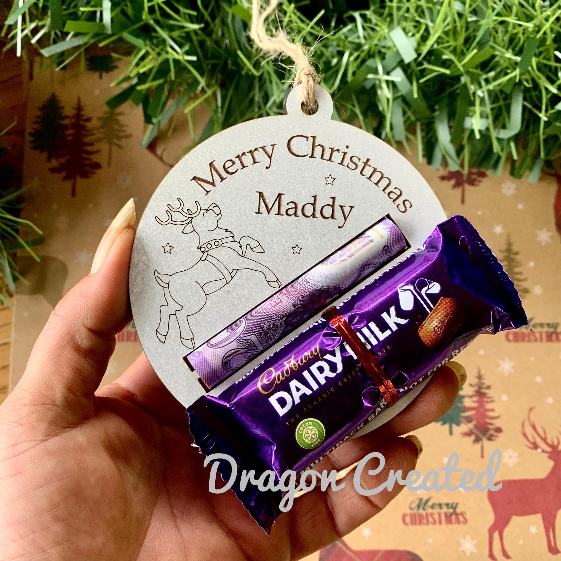 Personalised Reindeer Christmas Money & Chocolate Holder - Tree Ornament